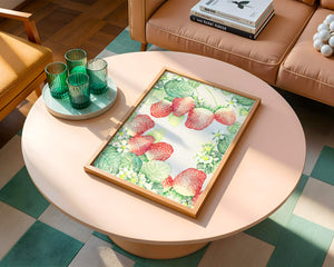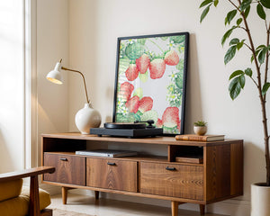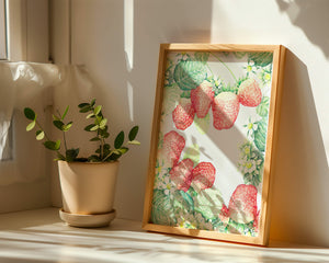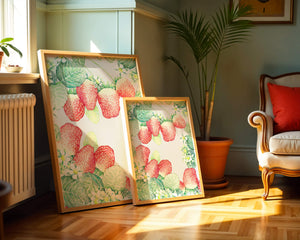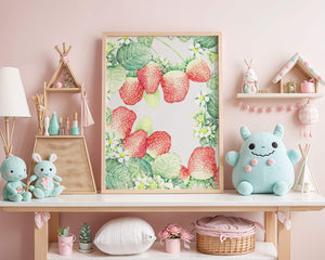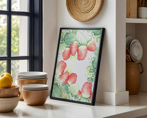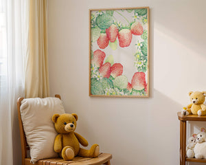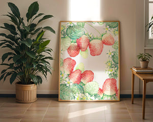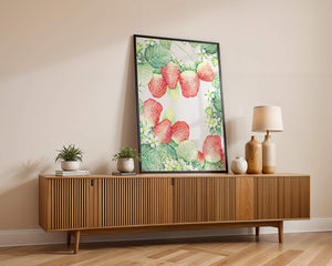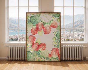 На изображении представлена восхитительная композиция из клубники на пике зрелости, переплетающейся с цветущими белыми цветами. Каждый элемент тщательно проработан, демонстрируя разнообразные текстуры и яркие цвета ягод и листвы. Цветовая палитра этой иллюстрации сочетает мягкие красные и зеленые оттенки, создавая естественную и живую атмосферу. Это идеальный декоративный элемент для кухонь или обеденных зон, вызывающий чувство свежести и жизненной силы, характерное для пышного сада. Изображение прекрасно передает изобилие природы, делая его очаровательным дополнением для любого интерьера.| Тип |