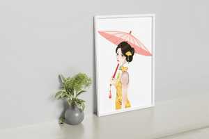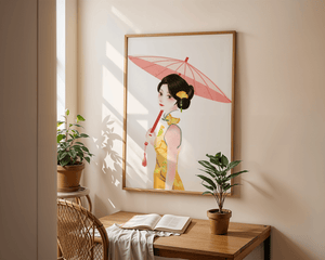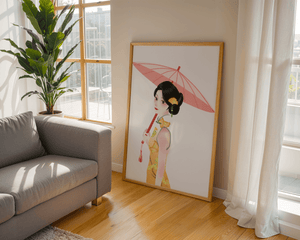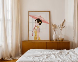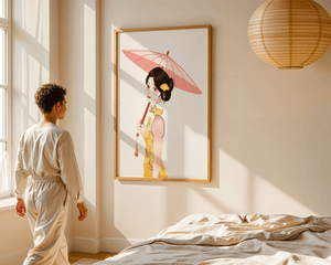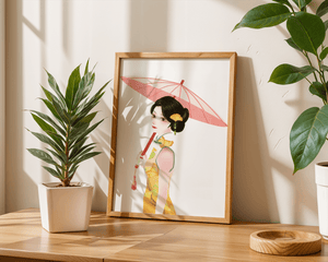 日本の芸者ウォールアート | オリエンタル・ミニマリストポスター | 伝統的なアジア装飾プリント