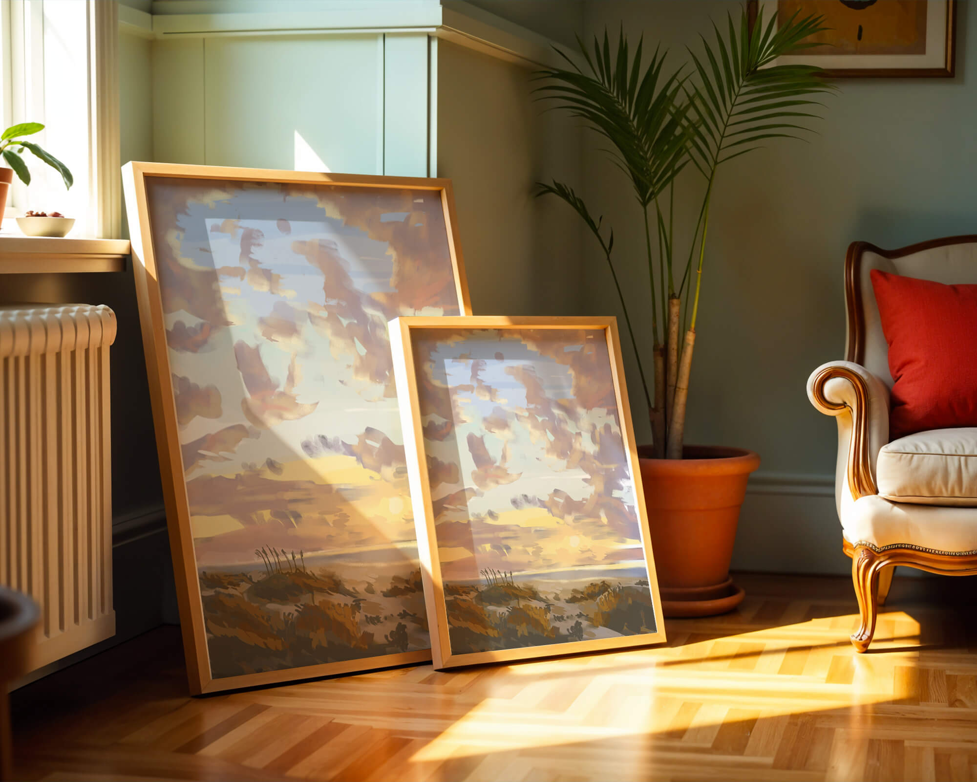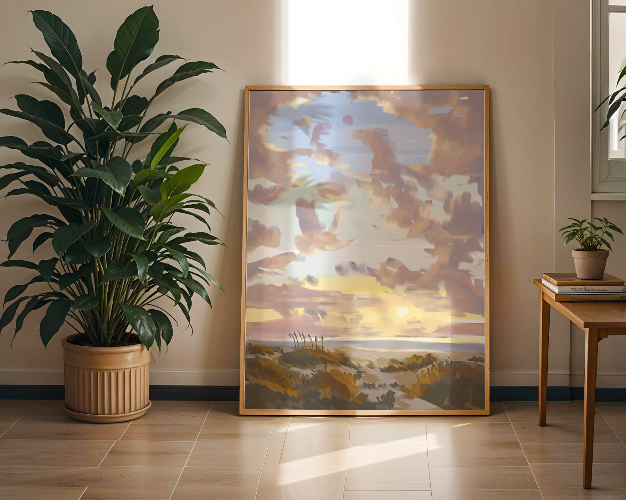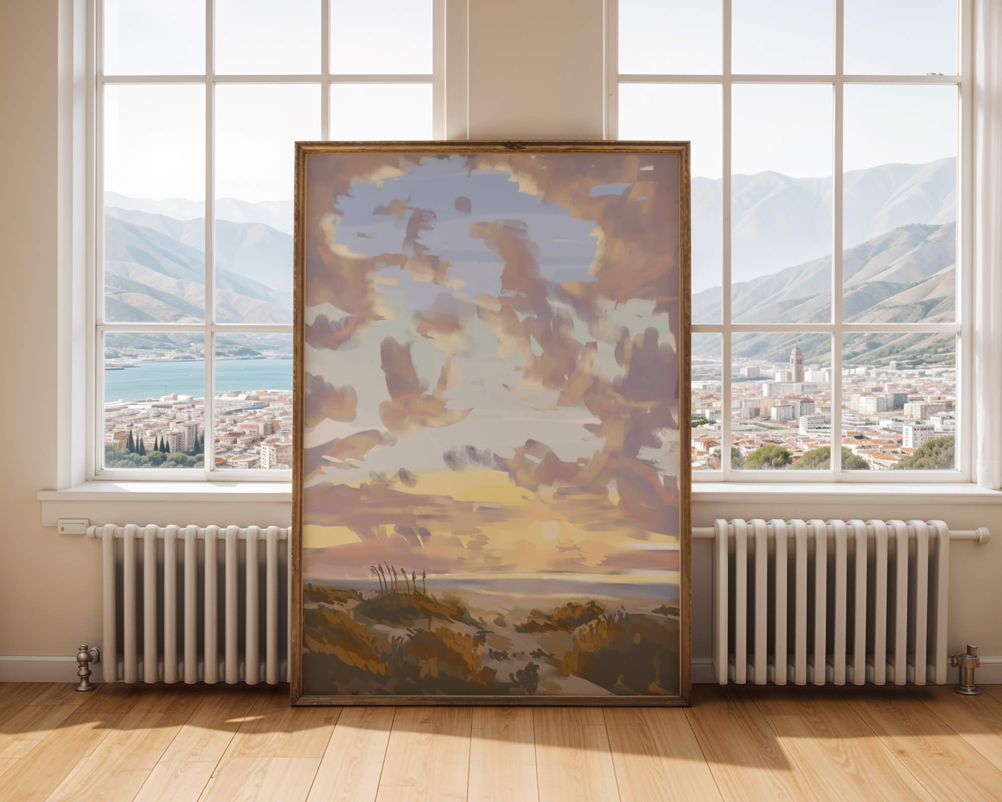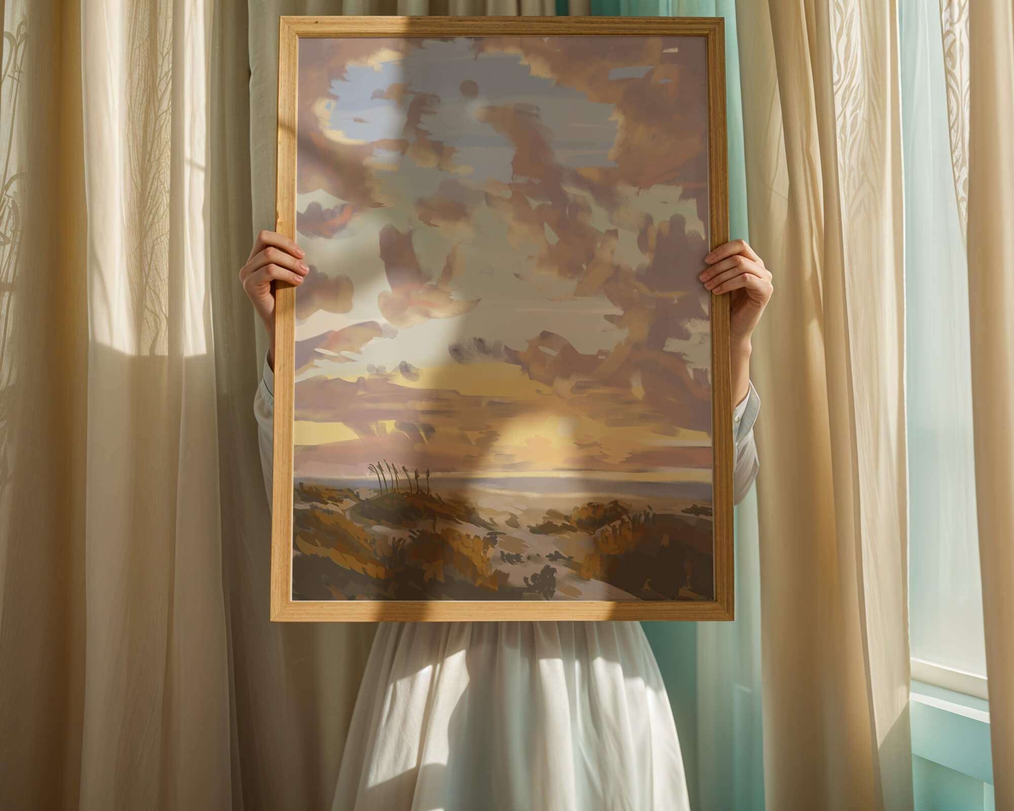 Изображение содержит прекрасно расписанное небо с пастельными цветами, плавно смешивающимися и подчеркивающими раннее утреннее солнце, выглядывающее через облака. Игра света и тени создает завораживающий вид природы, просыпающейся к новому дню. На переднем плане открытые поля изображены артистично, с тонкими деталями, передающими сущность природной красоты. Этот сюжет добавляет гармонии в любое пространство, предлагая момент отдыха и напоминание о безмятежной красоте природного мира.| Тип |