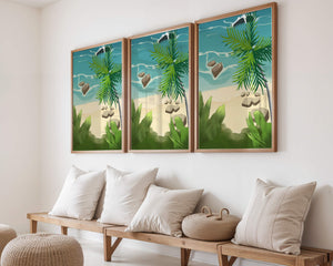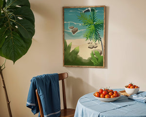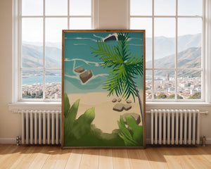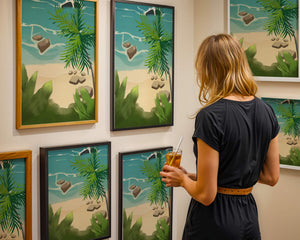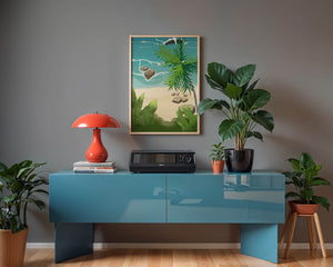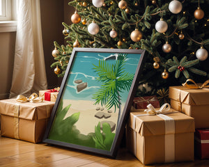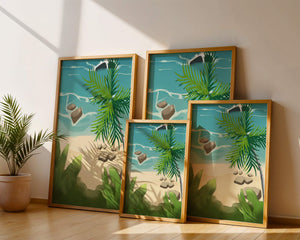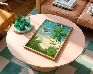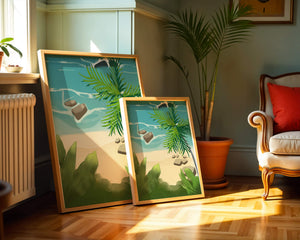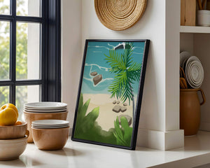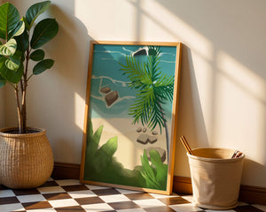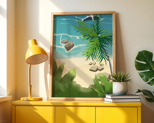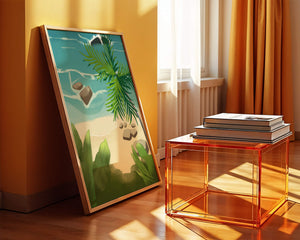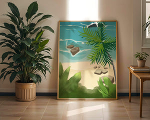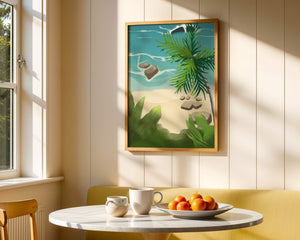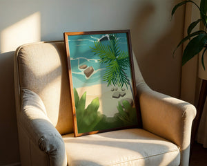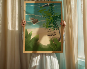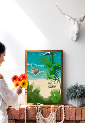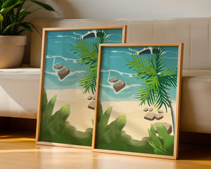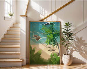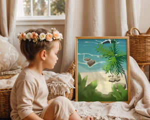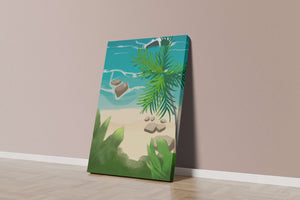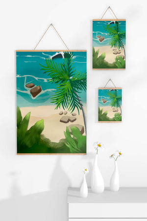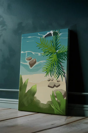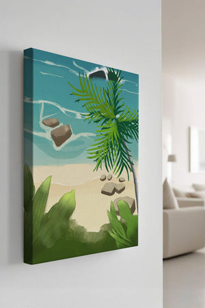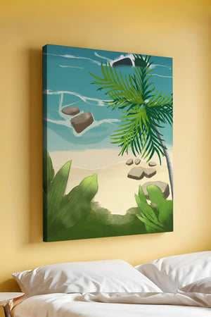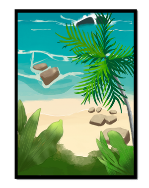 Работа изображает классическую пляжную сцену, передающую сущность тропического отдыха. Теплый песок изумительно контрастирует с прохладной лазурной водой, приглашая зрителей представить себе мягкое прикосновение пляжа под ногами и освежающий морской бриз. Пальма добавляет немного экзотической изысканности, ее пышные зеленые листья слегка покачиваются на ветру. Эта сцена является воплощением расслабления и спокойствия, делая её идеальным местом для всех, кто мечтает о побеге на тихий и чарующий островной рай.| Тип |