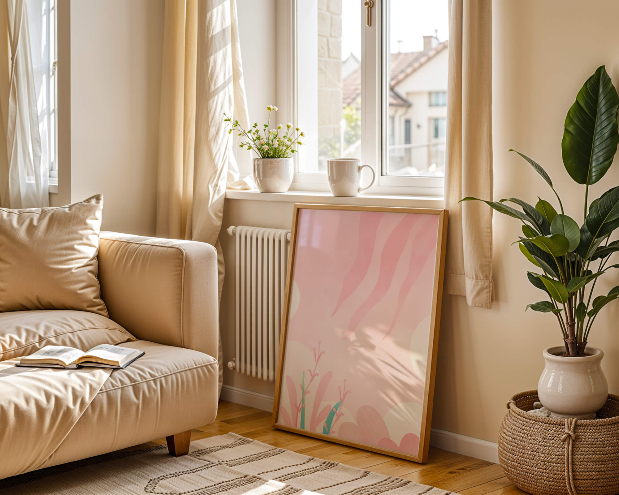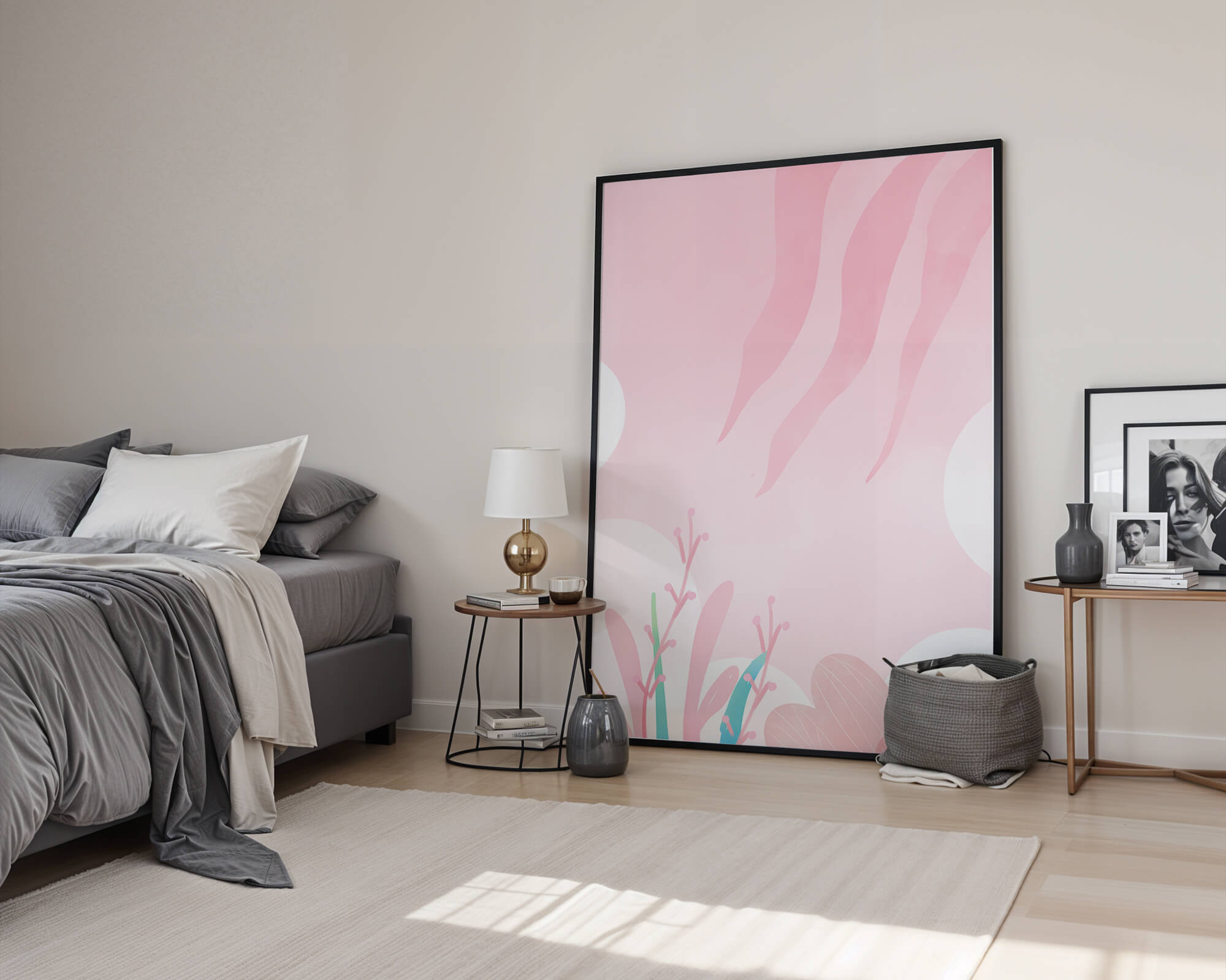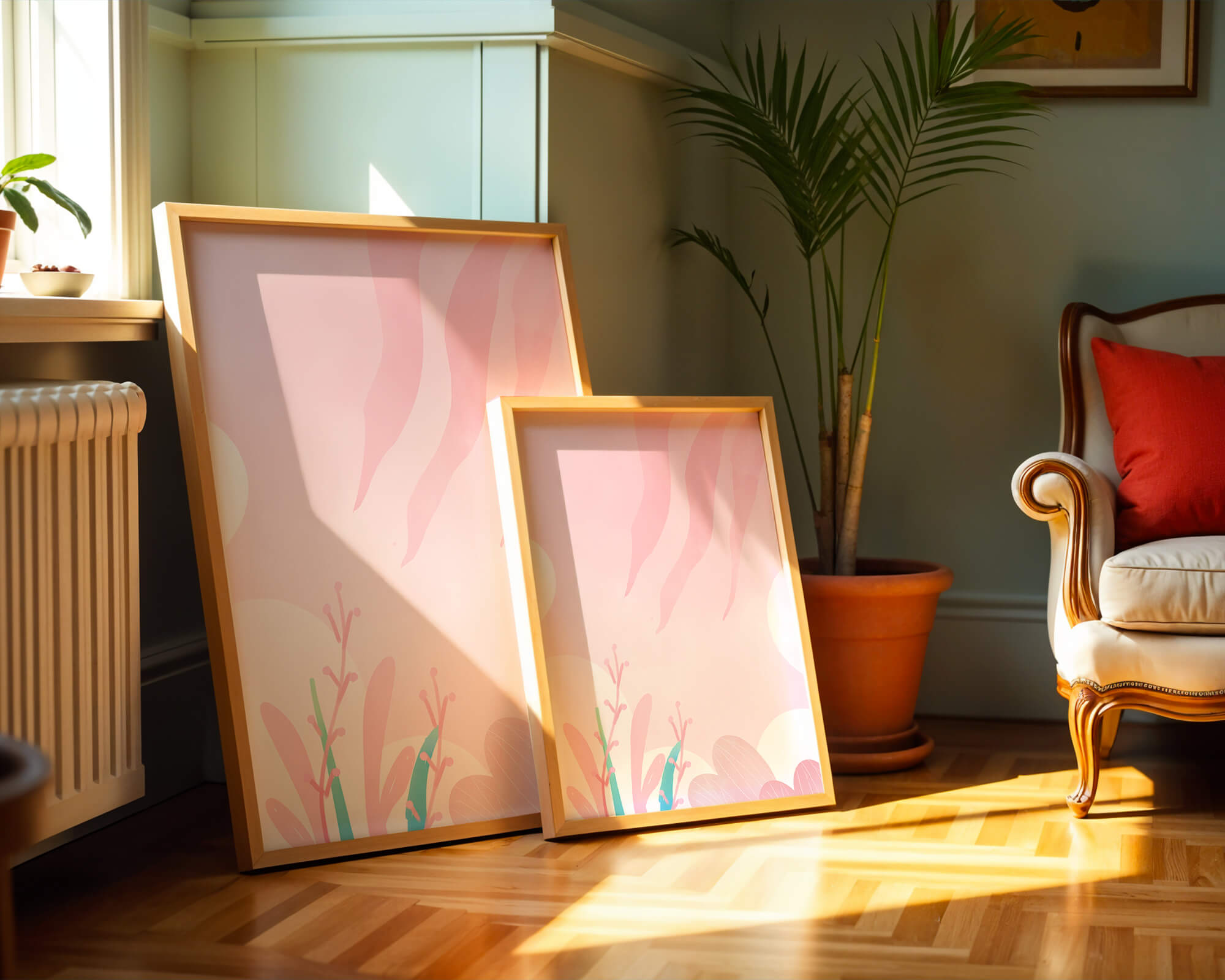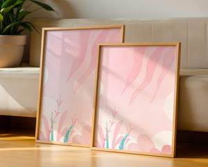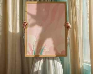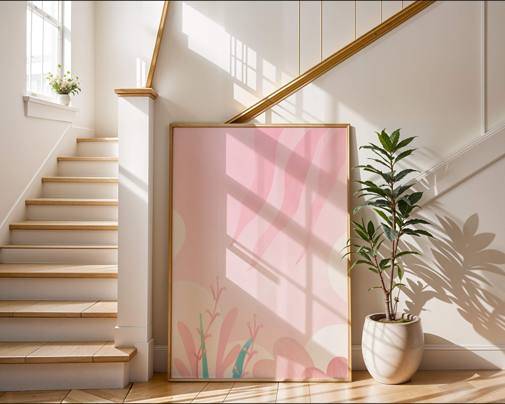 Палитра этой иллюстрации сочетает различные оттенки розового, придавая ей пастельное и воздушное ощущение. Листья и цветочные мотивы как бы парят в рамках, выглядя живыми и динамичными. Минималистичный дизайн позволяет воображению зрителя блуждать, вызывая мысли о природе и спокойствии. Это произведение идеально для тех, кто ищет декоративное искусство, которое сочетает природную красоту с современным дизайном. Его мягкие, плавные линии и гармоничная цветовая гамма делают его идеальным выбором для улучшения любого пространства с ноткой изящества и прихоти.| Тип |
